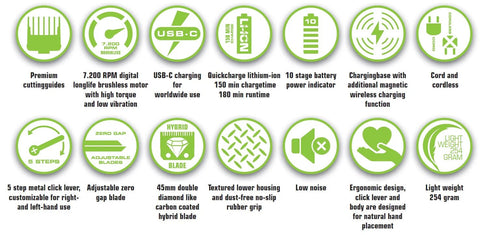 The powerful brushless motor with 7200 rpm responds effortlessly to resistance, while the zero-gap adjustable cutting blade ensures clean fades and detailed work. Thanks to the wireless charging station and universal AC adapter, the Assassin is immediately ready for professional use.